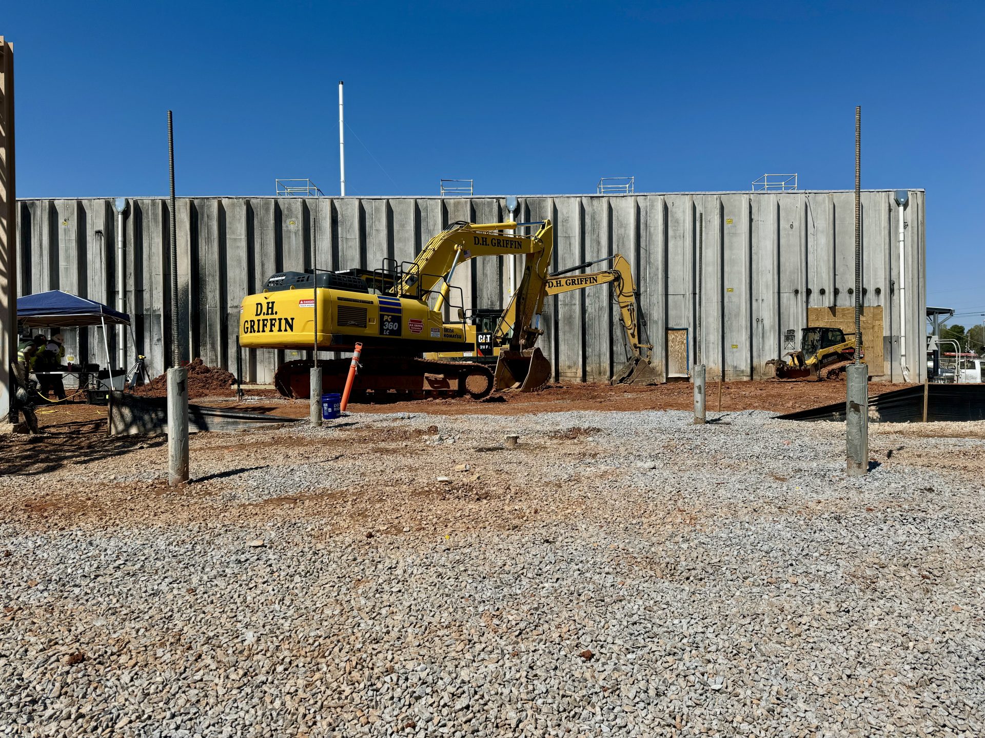 Aggregate piers were installed to improve bearing capacity and mitigate settlement within the upper soil profile. Designed for an allowable bearing pressure of 2,500 psf (pounds per square foot), the piers were constructed using a bottom-feed method to ensure consistent material placement and compaction. To confirm performance, a full-scale plate load test was performed, verifying that the aggregate piers met design criteria.