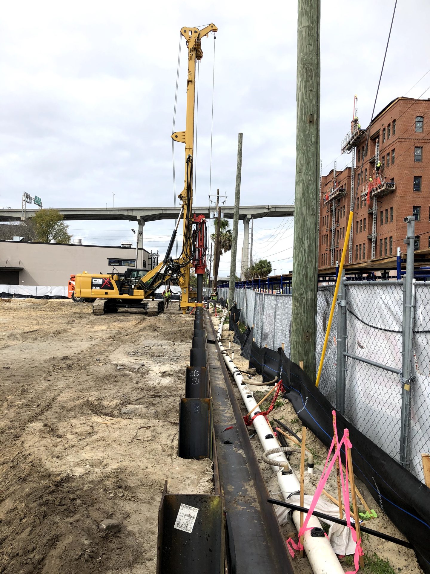 Taproot Construction was selected to provide earth retention services for the Olmsted Savannah project, a luxury mid-rise multifamily development located in Savannah, Georgia’s vibrant historic district. To support the construction of a below-grade basement level, Taproot installed a temporary driven soldier pile and lagging shoring system encompassing all four sides of the excavation.