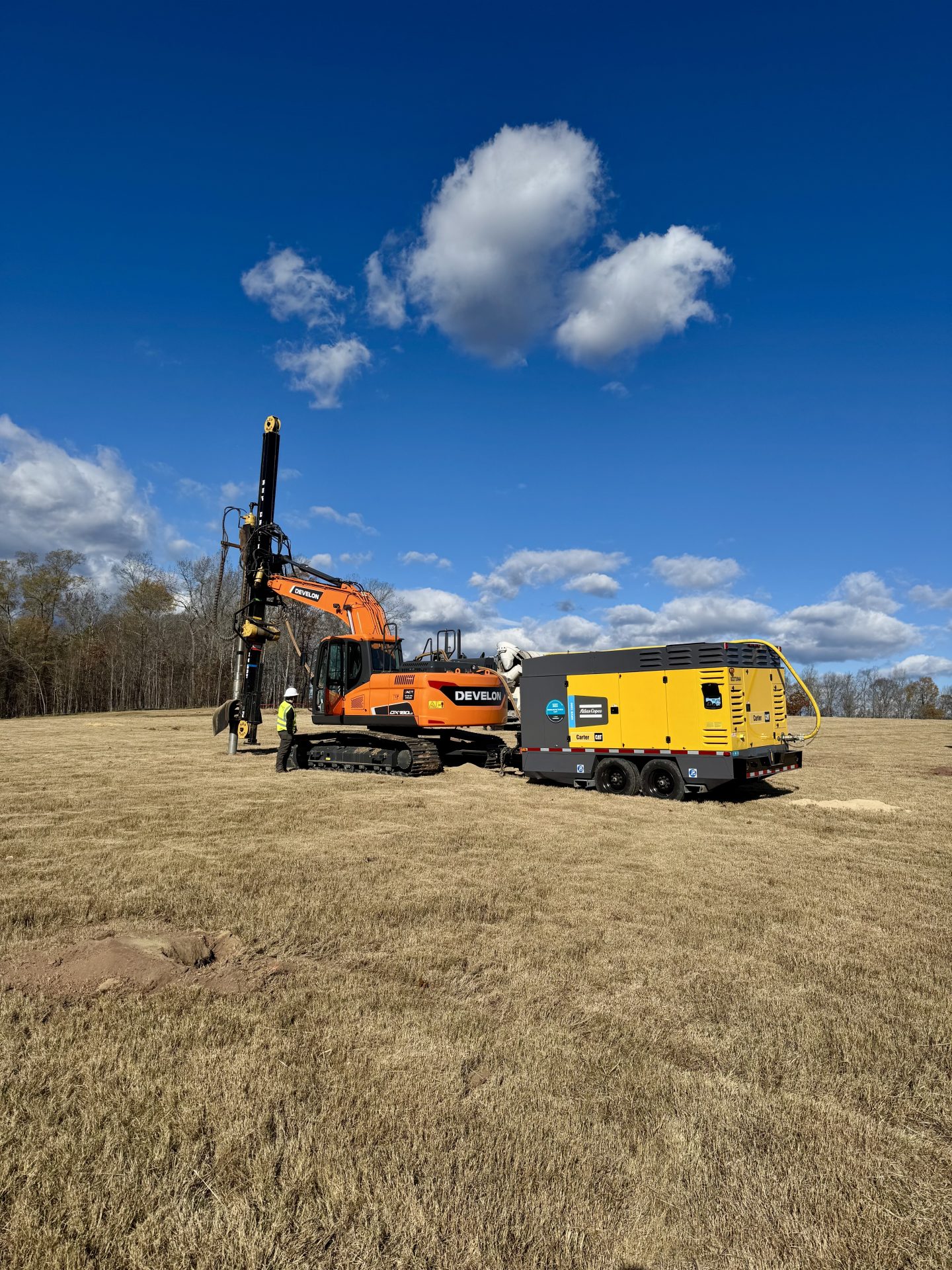 Taproot Construction played a key role in the development of the Southern Virginia Solar (SVS) project in Danville, Virginia — one of the largest utility-scale solar farms in the region. The expansive site required predrilling for a variety of solar post types across challenging and variable subsurface conditions.